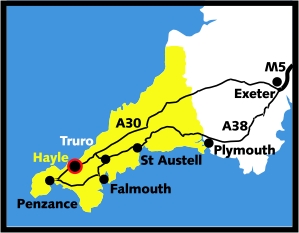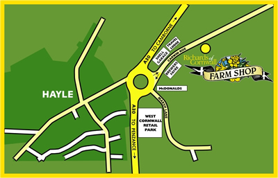 We are situated just off the main Hayle Roundabout at Loggans Moor near the new West Cornwall Retail Park. From the roundabout head towards Connor Downs, the Shell Garage will be on your left and Mcdonalds will be on your right. We are about 200 metres along this road on the right-look for the cottage by the road.